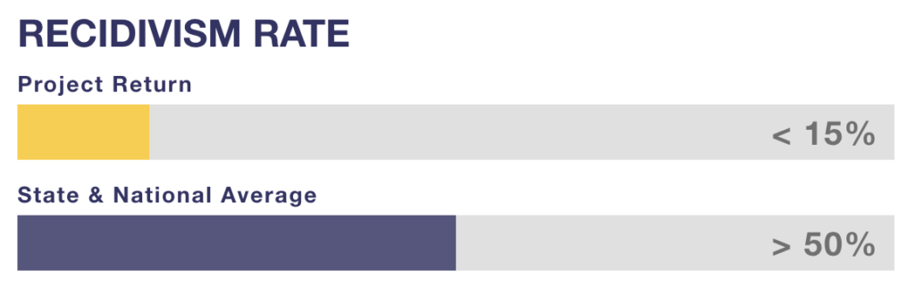 While the state and national recidivism rates exceed 50%, the rate for people coming through Project Return is lower than 15%.
